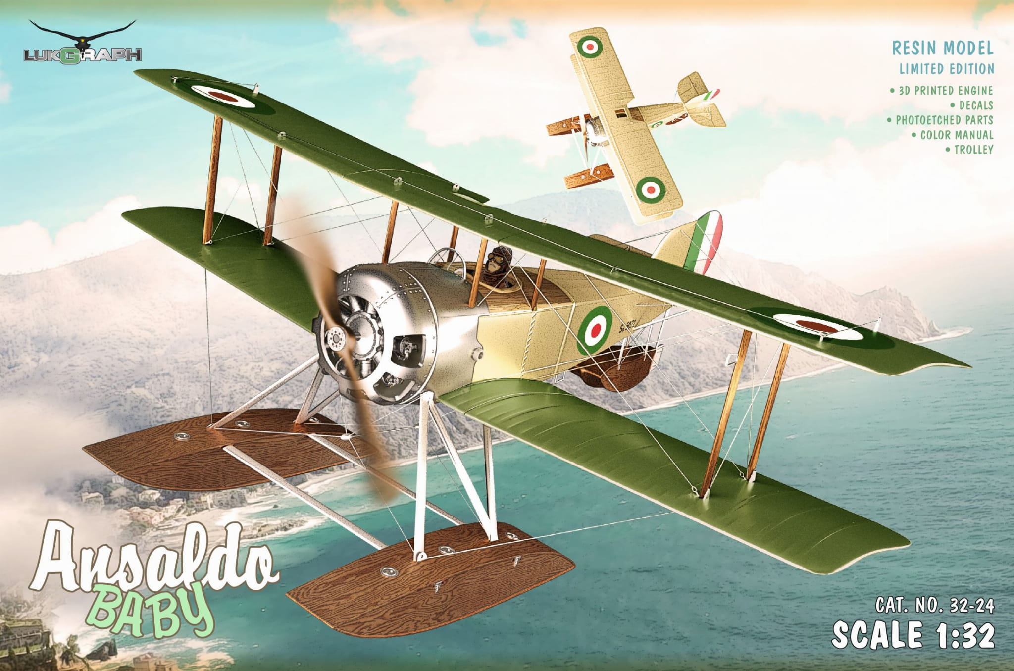 Lukgraph: Ansaldo Baby Skala: 1:32 Nr kat: 3224 Opcje malowania: 1 Typ modelu: model żywiczny, elementy 3D, elementy fototrawione. |