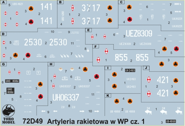 Toro Models: Artyleria rakietowa w WP cz. 1 Skala: 1:72 Nr kat: 72D49 Typ: kalkomanie |