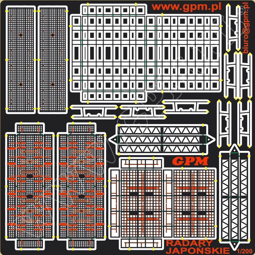 GPM: radary, okręty japońskie Skala: - 1/200 Nr kat: FOT RAD - 2021 Typ modelu: elementy fototrawione |