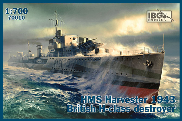 IBG MODELS: HMS Harvester 1943 British H-class destroyer Skala: 1:700 Nr kat: 70010 Opcje malowania: 1 Typ modelu: model wtryskowy, elementy fototrawione, |