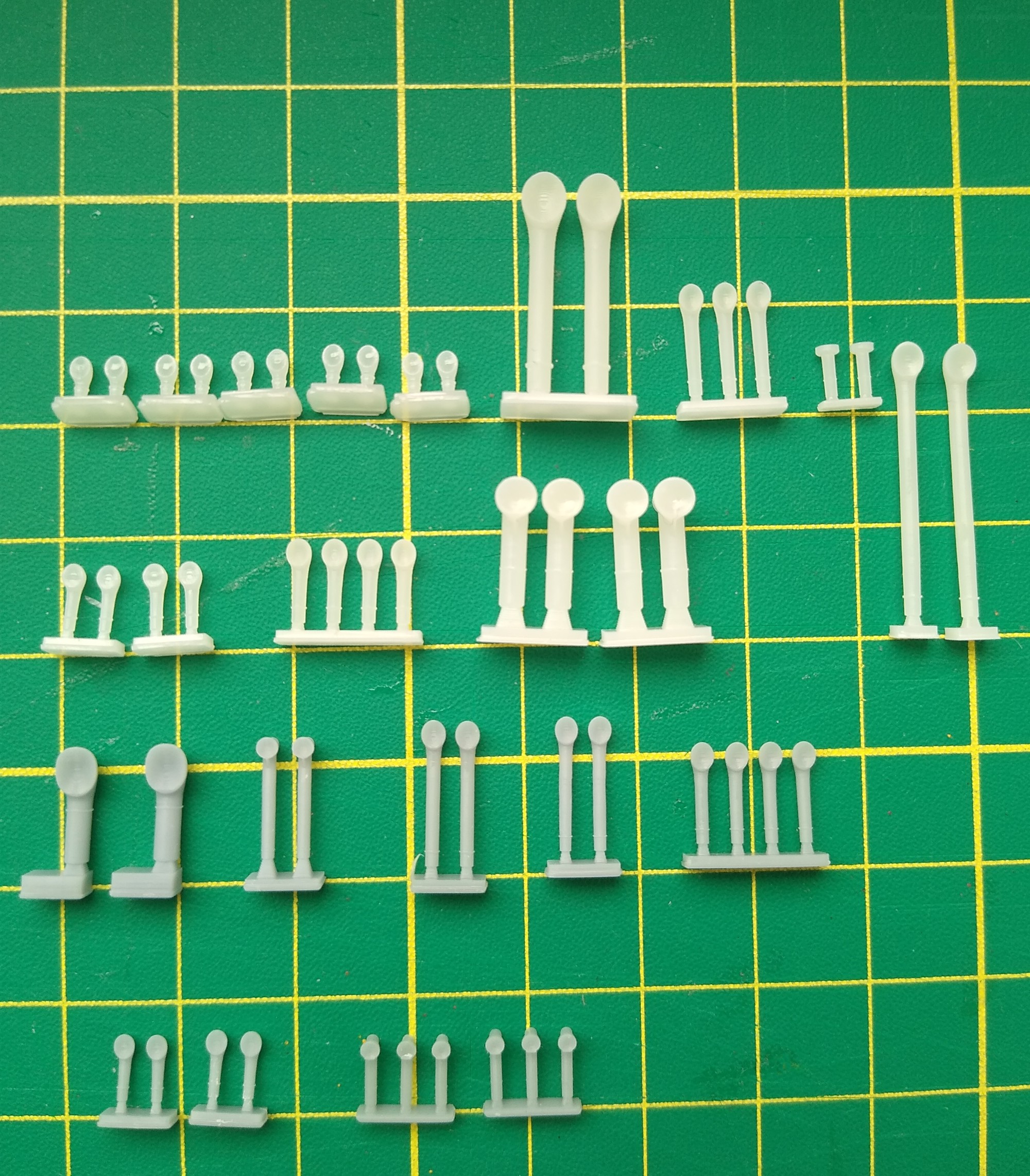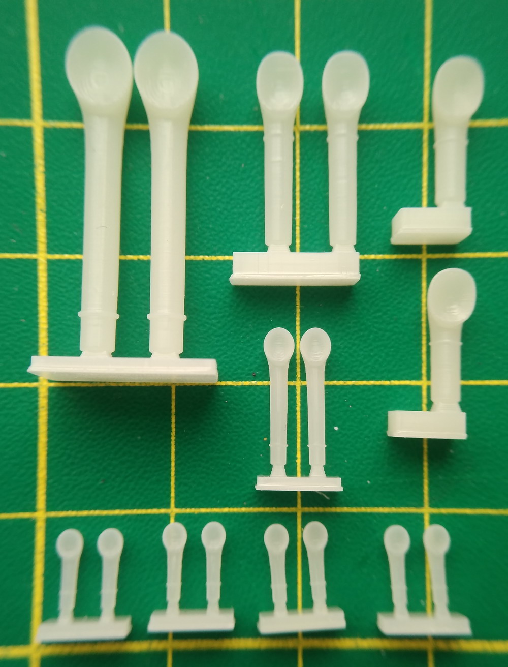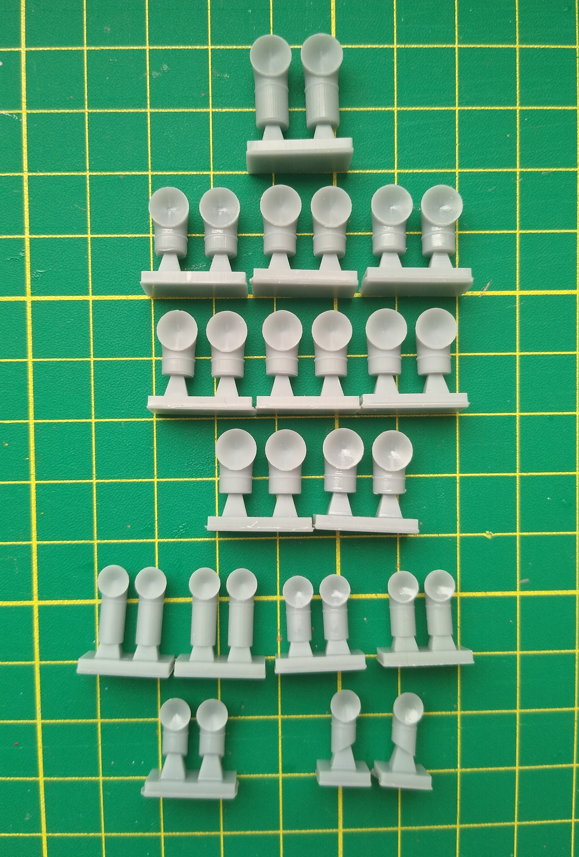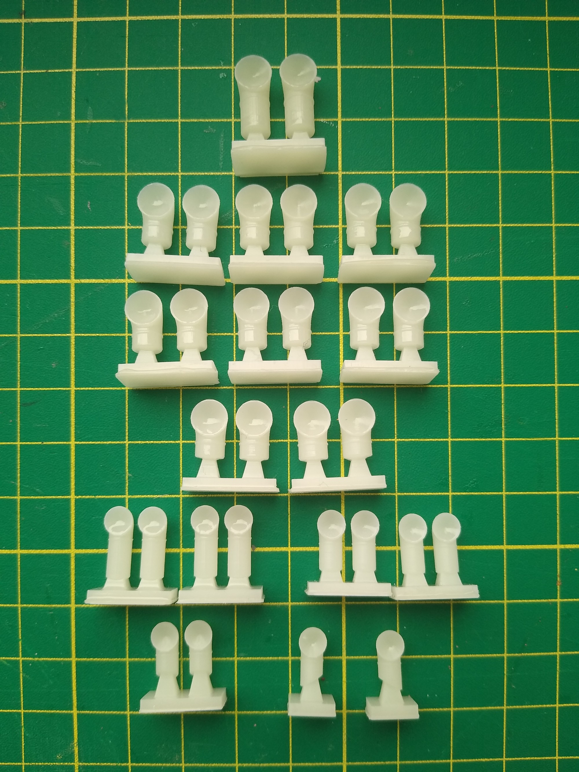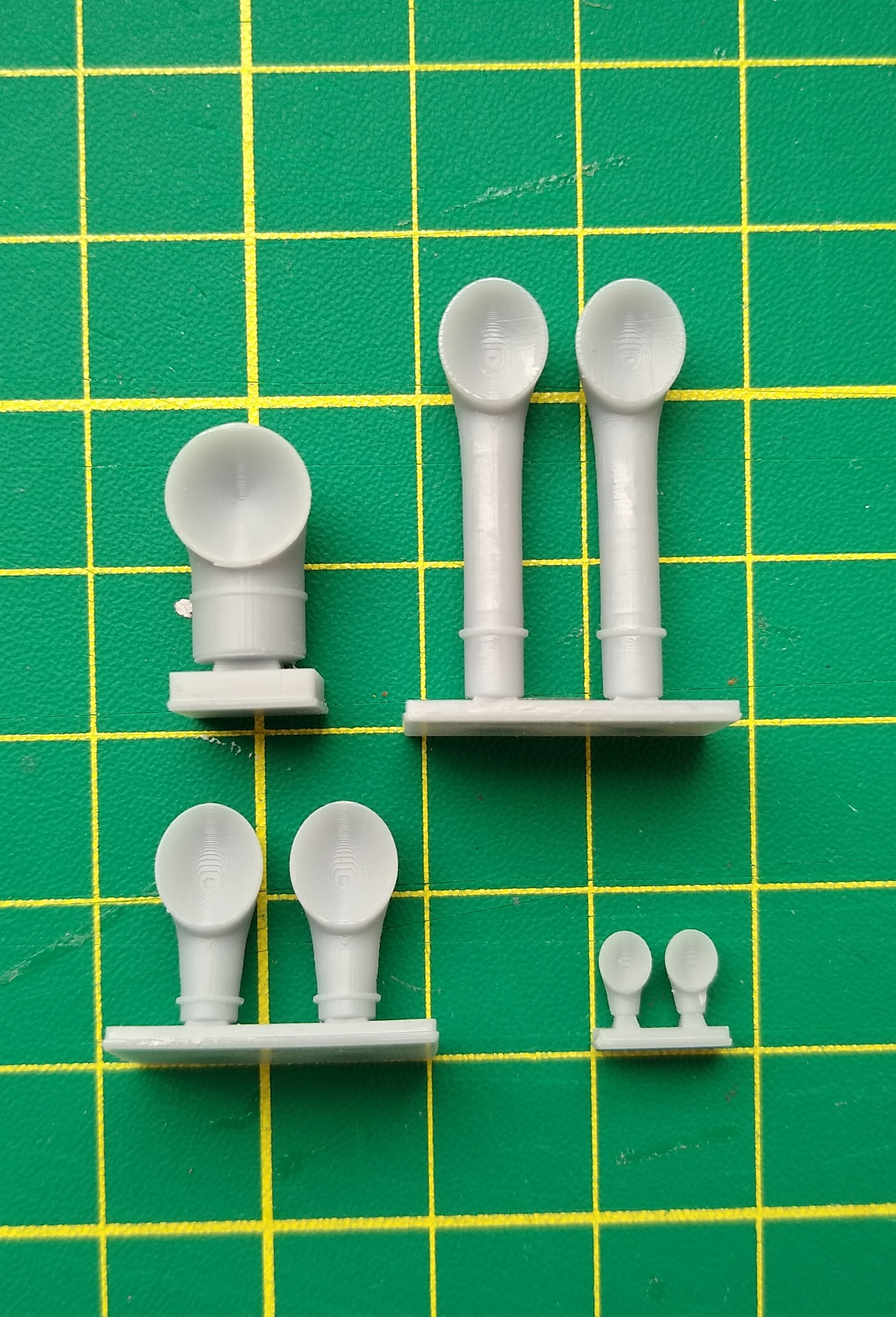 JSC: nawiewniki do statku Qeen Mary Skala: 1:400 Nr kat: No. 064a-D Typ modelu: odlew żywiczny |