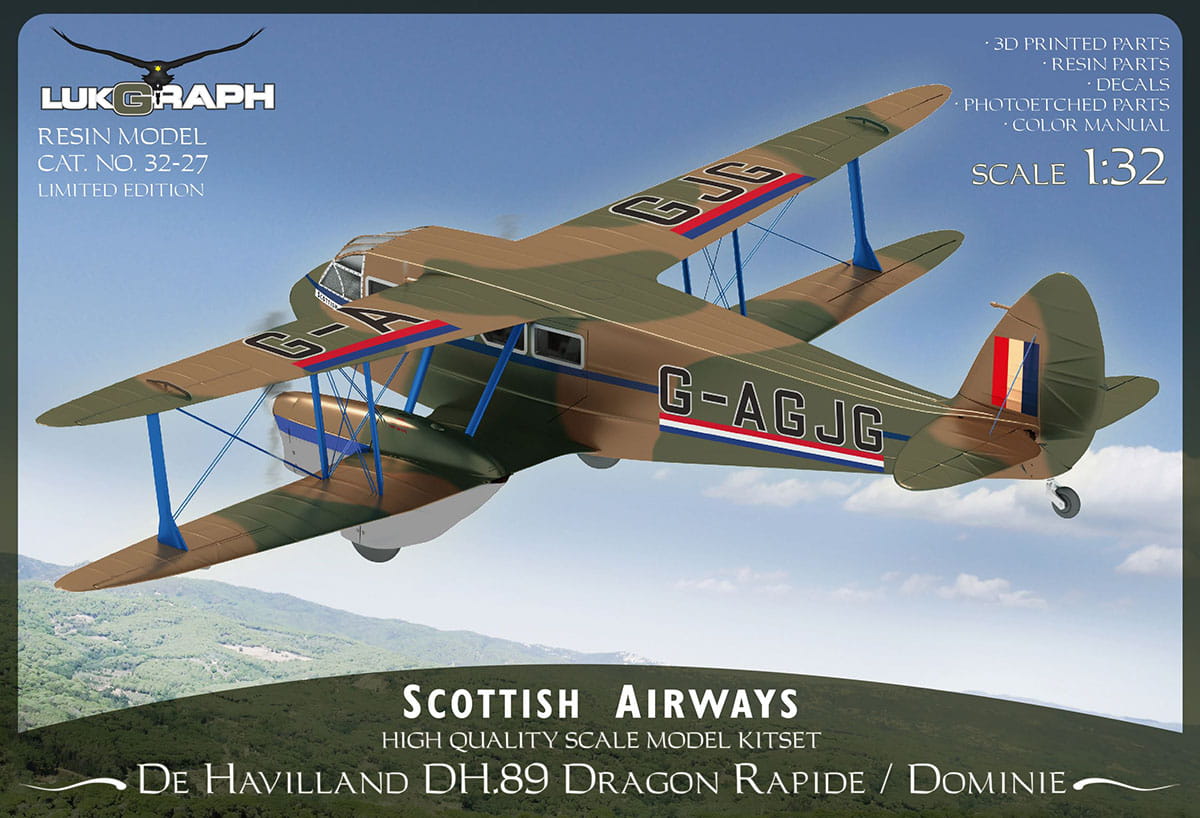 Model DH.89 Dragon Rapide w malowaniu szkockich linii lotniczych to najnowsza propozycja Lukgraphu. Model ten jak wcześniejsze propozycje tej firmy to wysokiej jakości zestaw składający się z części żywicznych, fototrawionych i wydruków 3D. Pojawiły się także zdjęcia gotowego modelu wykonanego po mistrzowsku przez Andrzeja Marchwickiego. Producent uchylił także rąbka tajemnicy, nad jakim projektem aktualnie pracuje...