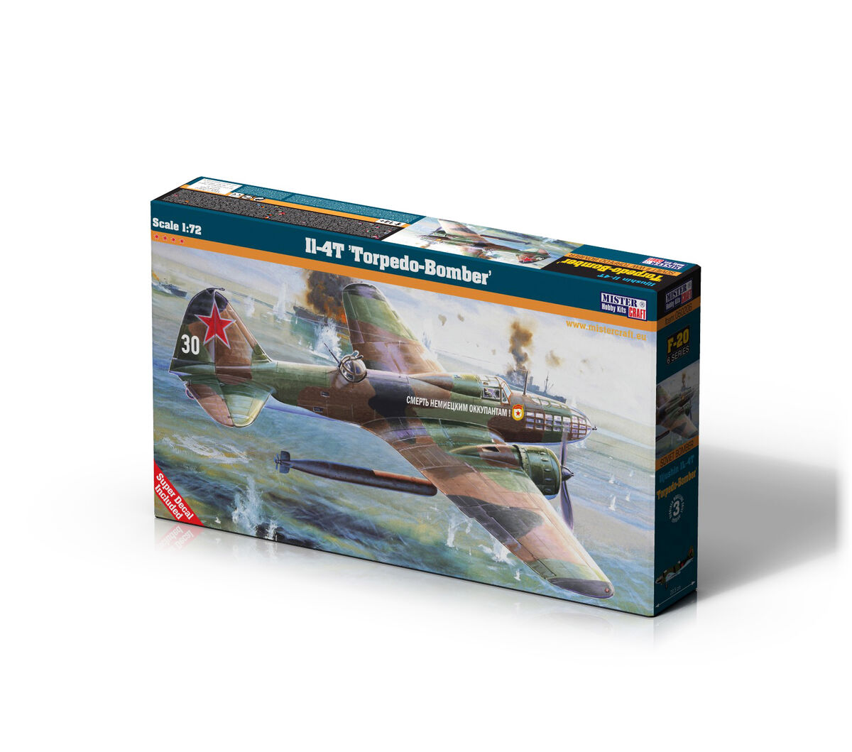 Mistercraft: Ił-4 "Torpedo Bomber" Skala: 1:72 Nr kat: F-20 Opcje malowania: 3 Typ modelu: model wtryskowy (ex -Zvezda) |