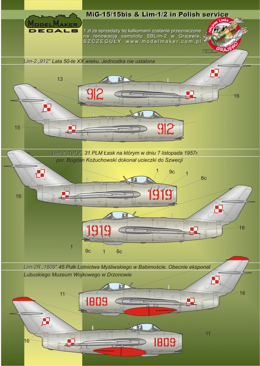 ModelMaker Decals: MiG-15/15bis & Lim-1/2 in Polisch Air Force |