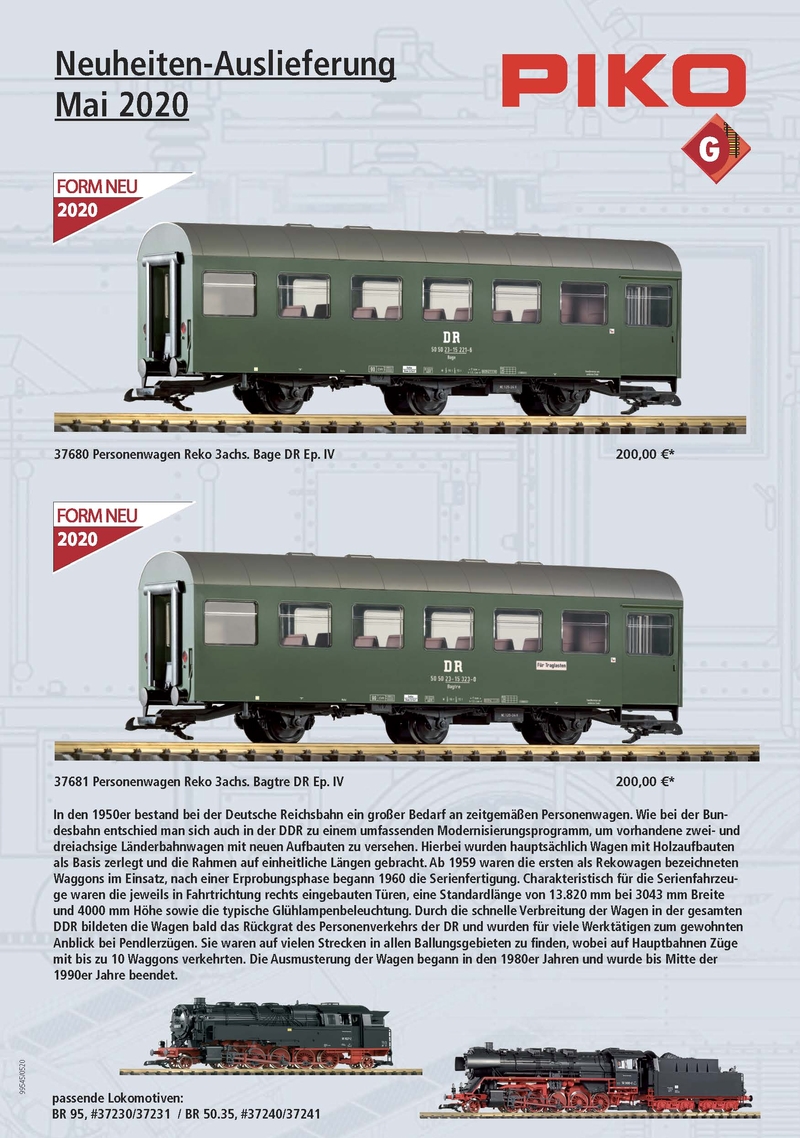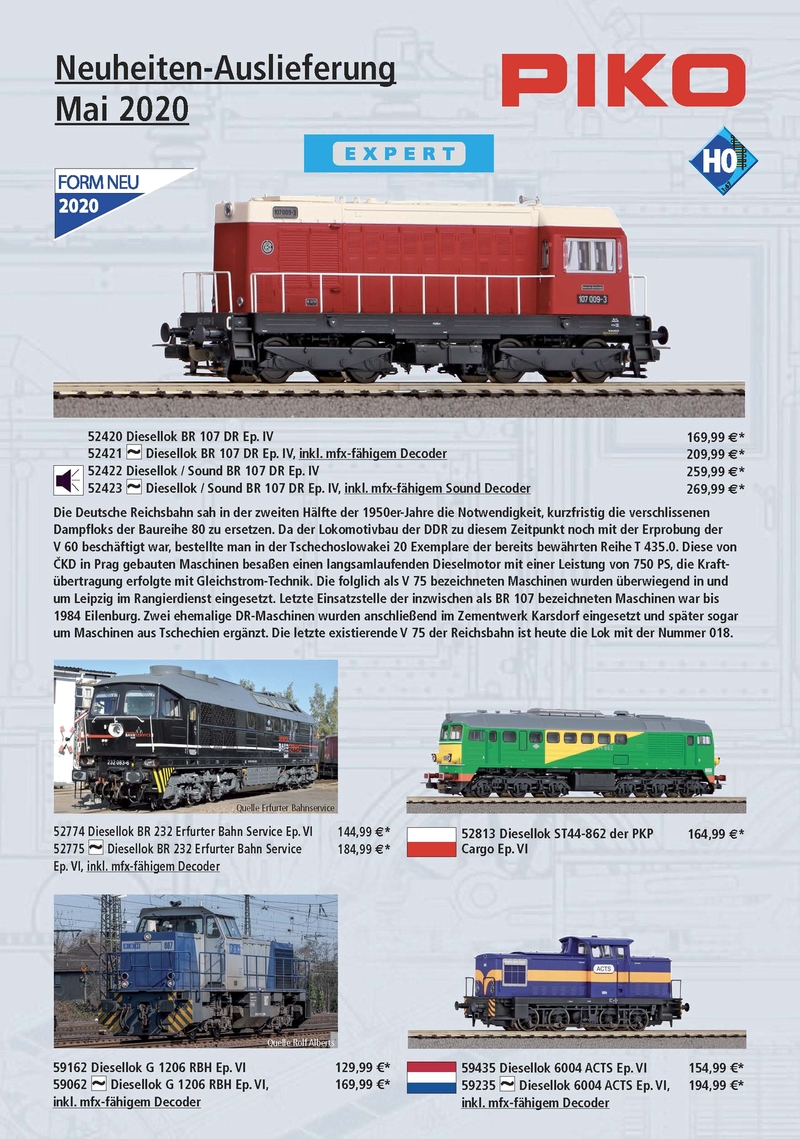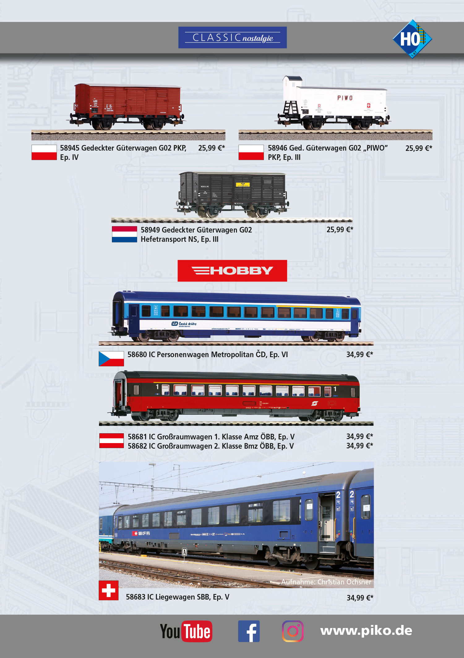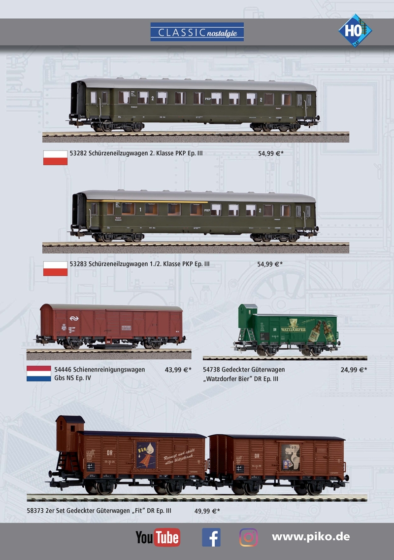 Kiedy przegląda się co miesięczne wykazy nowych propozycji PIKO samo nasuwa się pytanie, jak oni to robią, że miesiąc w miesiąc mają kilkanaście nowych propozycji, precyzyjnych i wiernych przecież modeli. Pogratulować prężnego działania i rozmachu. Tak jest i tym razem, modele we wszystkich skalach i epokach a wśród nich także kilka ciekawych propozycji polskiego taboru kolejowego. Jest w czym wybierać.