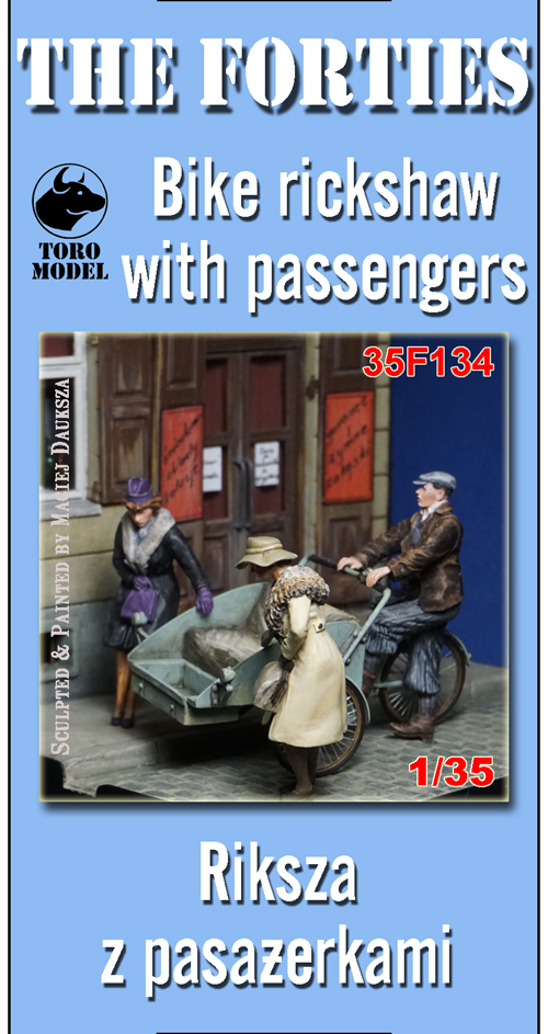 Toro Models: Riksza z pasażerami Skala: 1:35 Nr kat: 35F134 Opcje malowania: 1 Typ modelu: 3 x figurka żywiczna. |