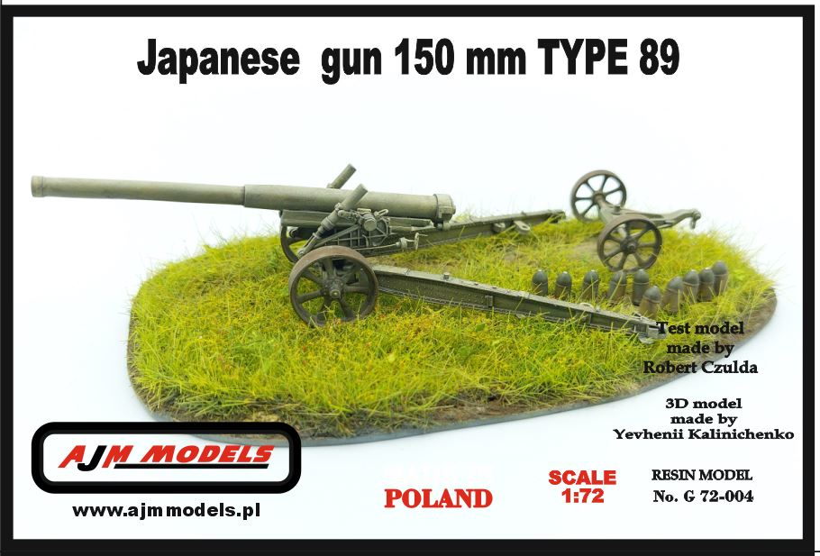 AJM Model: Japanese gun 150 mm type 89 Skala: 1/72 Nr kat: G. 72-004 Opcje malowania: 1 Typ modelu: model żywiczny, elementy fototrawione, drut |