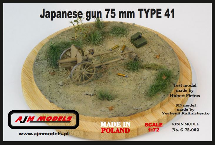 AJM Model: Japanese gun 75 mm type 41 Skala: 1/72 Nr kat: G. 72-002 Opcje malowania: 1 Typ modelu: model żywiczny, elementy fototrawione, drut |
