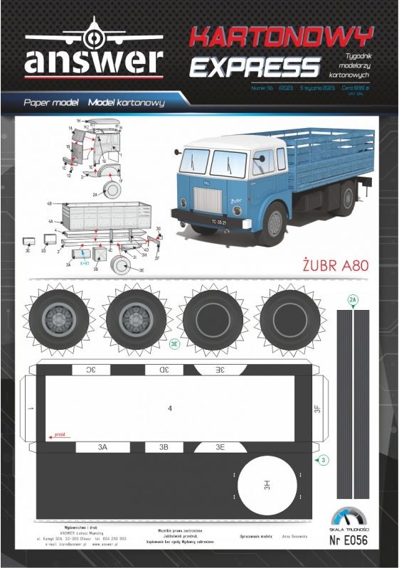 Kartonowy Ekspres: Żubr A80 Skala: - Nr kat: No. E056 Typ modelu: model kartonowy |
