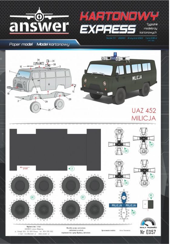 Kartonowy Ekspres: UAZ 452 Milicja Skala: - Nr kat: No. E057 Typ modelu: model kartonowy |