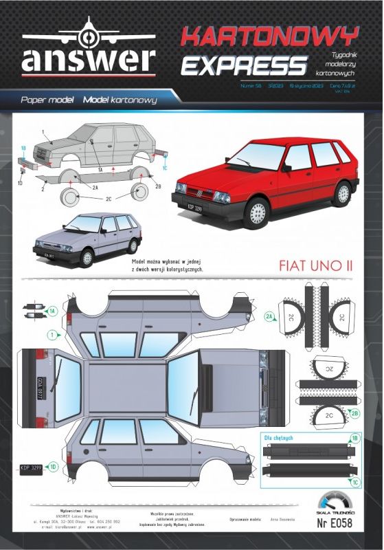 Kartonowy Ekspres: FIAT UNO II Skala: - Nr kat: No. E058 Typ modelu: model kartonowy |