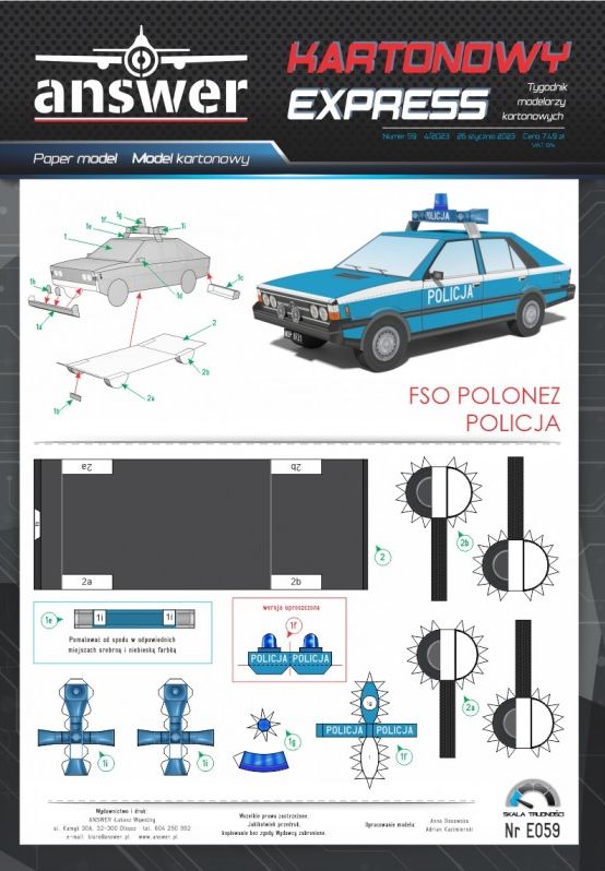 Kartonowy Ekspres: FSO Polonez Policja Skala: - Nr kat: No. E059 Typ modelu: model kartonowy |