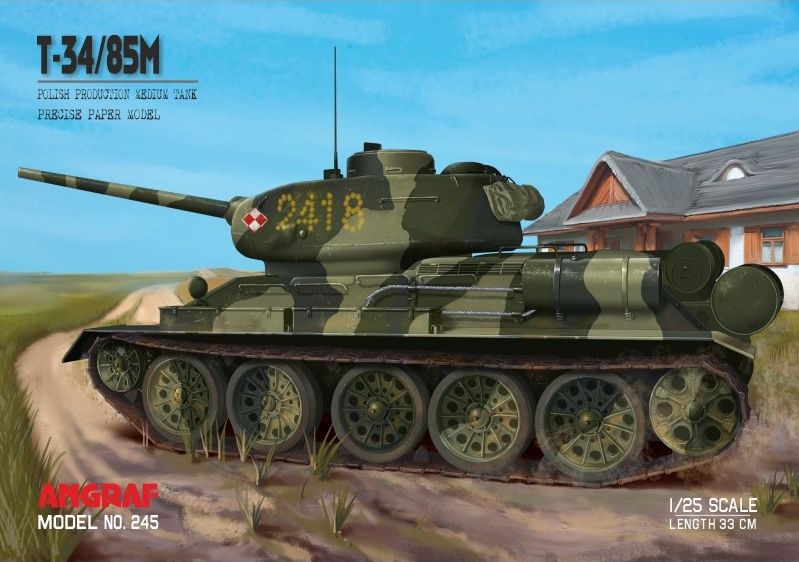 ANGRAF: T-34/85M Skala: 1:25 Nr kat: No. 245 Typ modelu: model kartonowy |