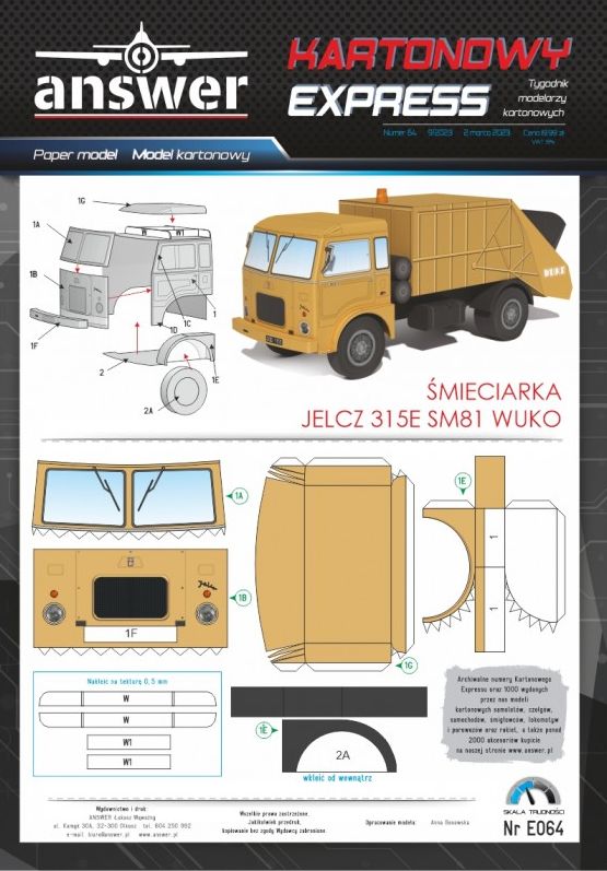 Kartonowy Ekspres: Jelcz 315E SM81 WUKO Skala: - Nr kat: No. E064 Typ modelu: model kartonowy |
