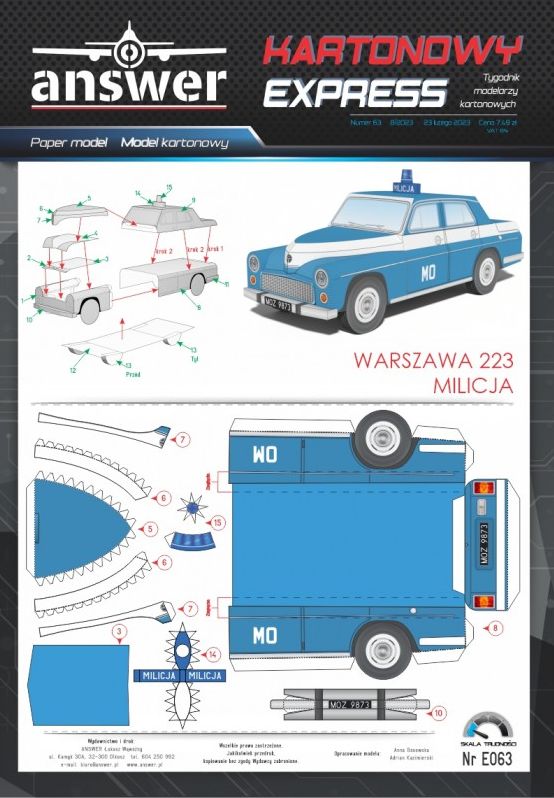 Kartonowy Ekspres: Warszawa 233 Milicja Skala: - Nr kat: No. E063 Typ modelu: model kartonowy |