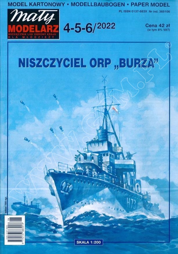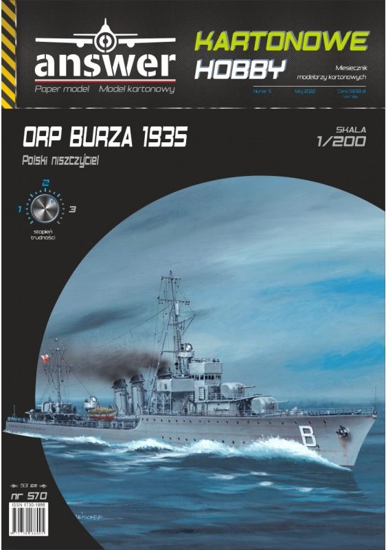 ANSWER Kartonowe Hobby: ORP Burza 1935 Skala: 1:200 Nr kat: No. 270 Typ modelu: model kartonowy |