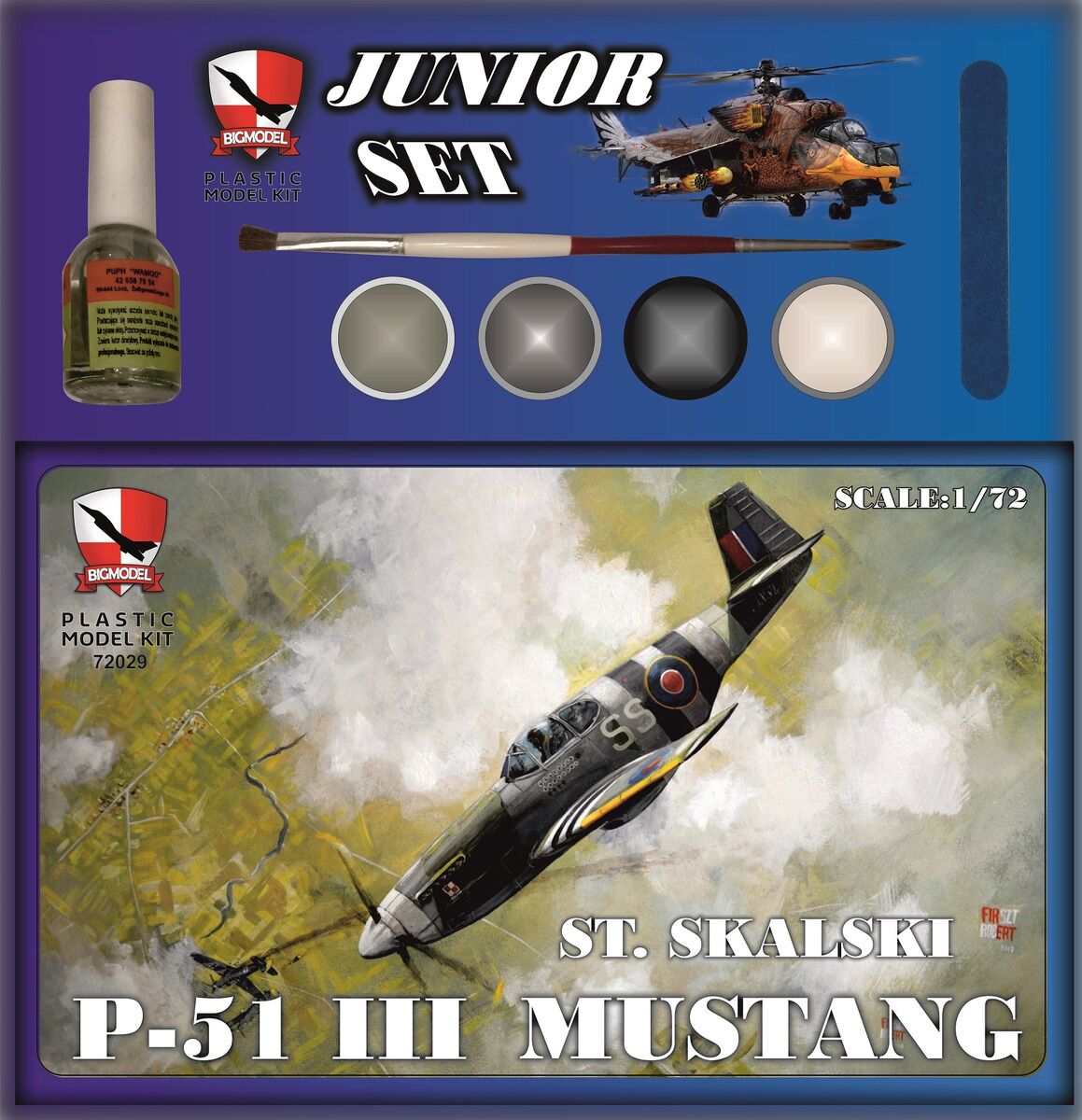 Big Model: P-51B Mustang Mk. III St. Skalski Junior SET Skala: 1:72 Nr kat: BGMJS72029 Opcje malowania: 1 Typ modelu: model wtryskowy (ex ?), farby, klej, narzędzia |