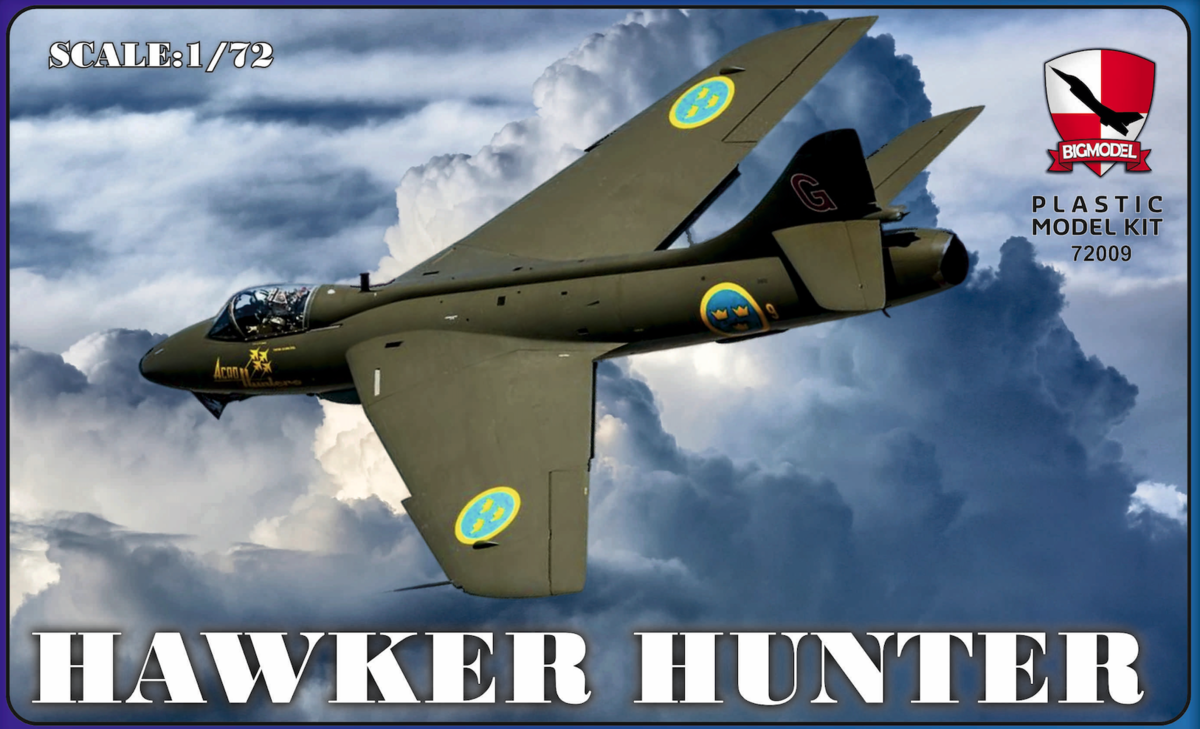 Big Model: Hawker Hunter Skala: 1:72 Nr kat: BGMJS72009 Opcje malowania: 1 Typ modelu: model wtryskowy (ex ZTS Plastyk), farby, klej, narzędzia |
