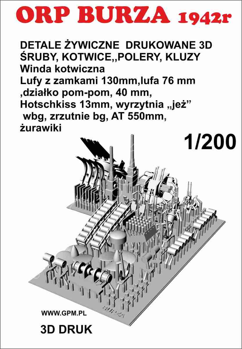 GPM: ORP Burza 1942 r. Detail Set Skala: 1:200 Nr kat: 3D-200-23 Typ modelu: druk 3D |