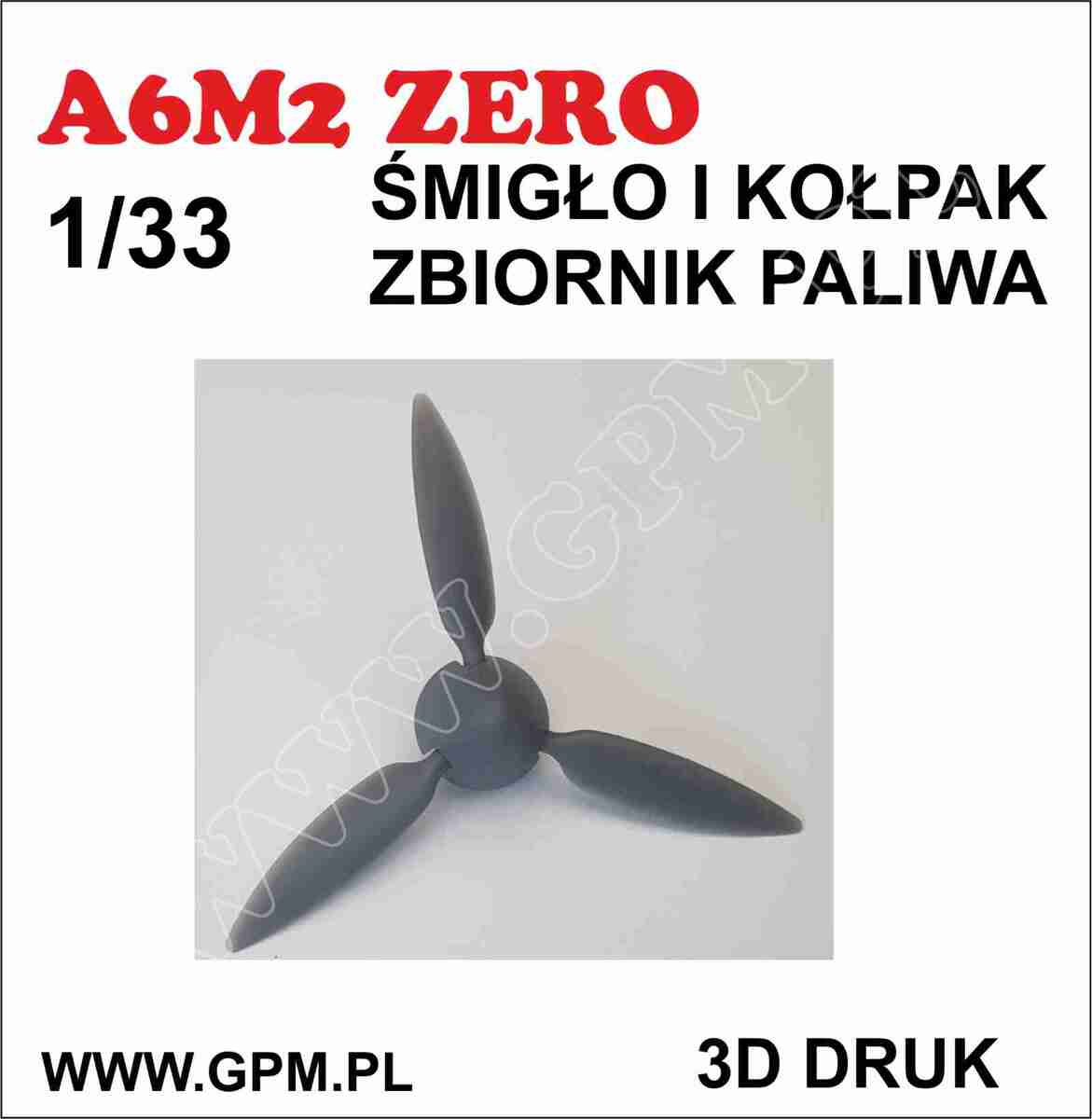 GPM: A6M2 ZERO śmigło, zbiornik paliwa Skala: 1:33 Nr kat: 3D-SM07 Typ modelu: druk 3D |
