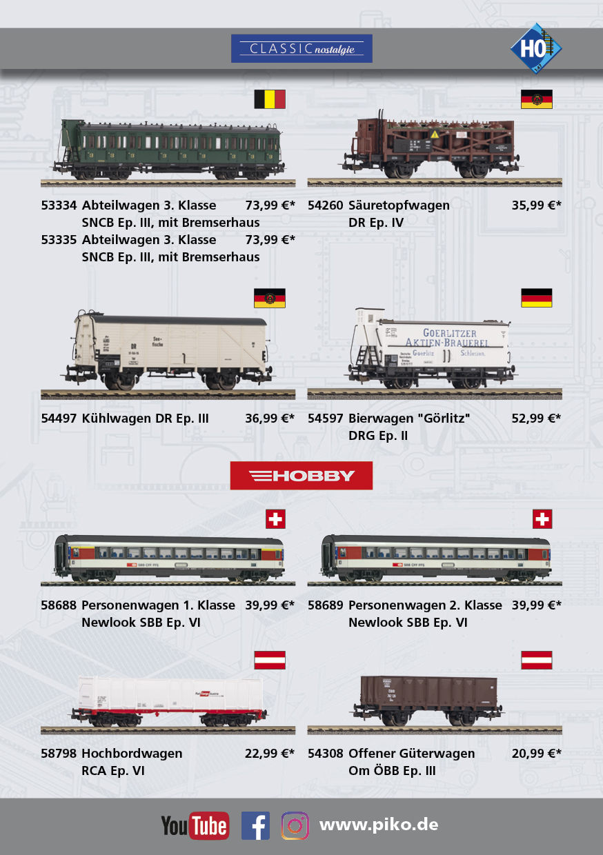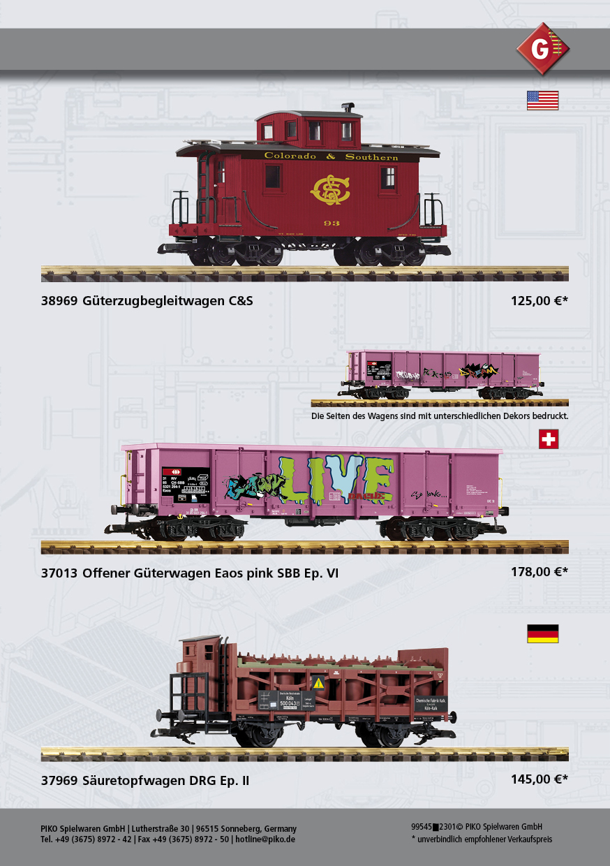 Nowe propozycje w ofercie PIKO to miniatury europejskiego taboru kolejowego w skali H0 oraz nieco taboru amerykańskiego w skali G.