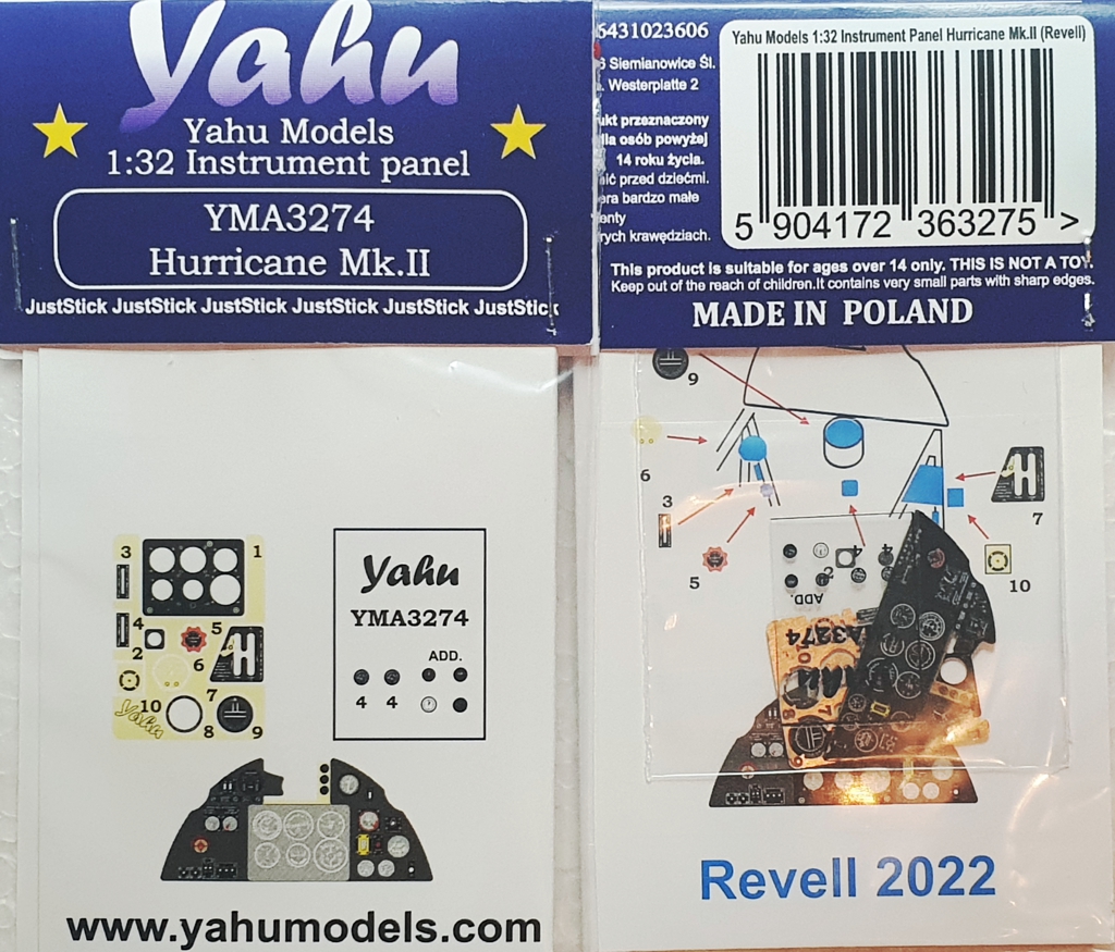 YAHUMODELS: Hurricane Mk.II Skala: 1:32 Nr kat: YMA3274 Typ: elementy fototrawione Dedykowany do: Revell |