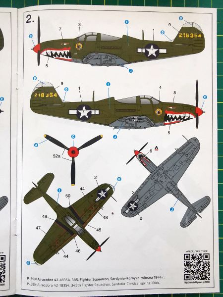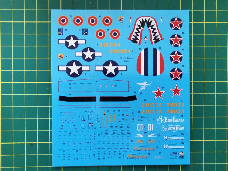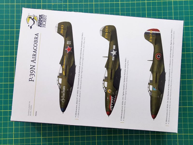 Co ciekawe, Arma bardzo sprytnie wybrnęła z tematu wybierając malowania co prawda za Frontu Wschodniego, gdzie Cobry były najbardziej popularne, ale pilotów ukraińskich, w tym jednego asa myśliwskiego, Iwana Babaka, nauczyciela z Marioupola. Zestaw skałą da się z identycznych ramek wtryskowych jak wcześniejsze P-39Q oraz P-400, do dyspozycji mamy także maski.