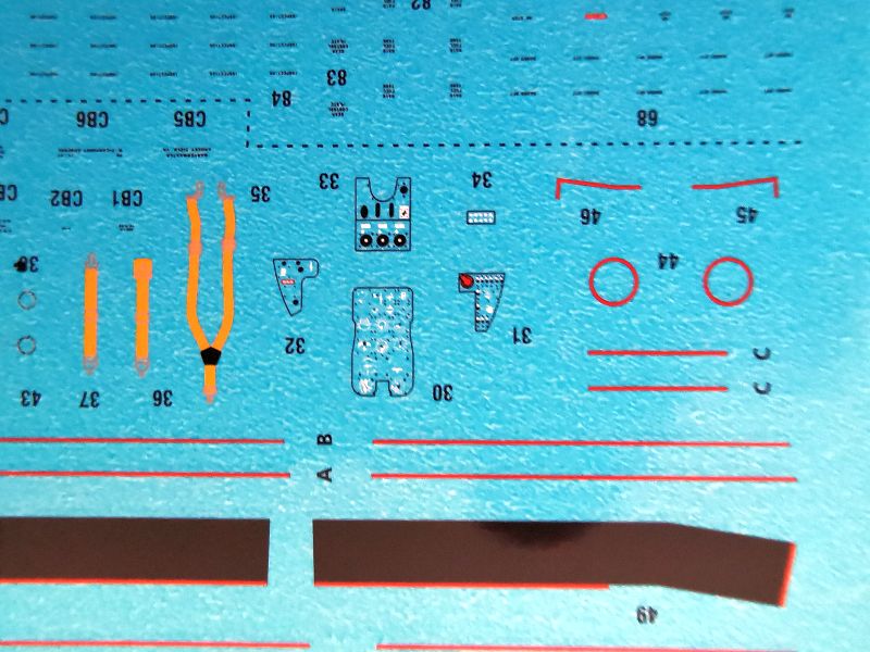 Bo pomimo tego, że niepozorny to jest naprawdę na bogato. Składa się bowiem z dość konkretnej fototrawionej blachy, wydruku 3D oraz kalkomanii. Tej ostatniej ewidentnie zabrakło w zestawie ICM. Kalkomania zawiera numery burtowe dla w sumie pięciu jednostek oraz bandery.