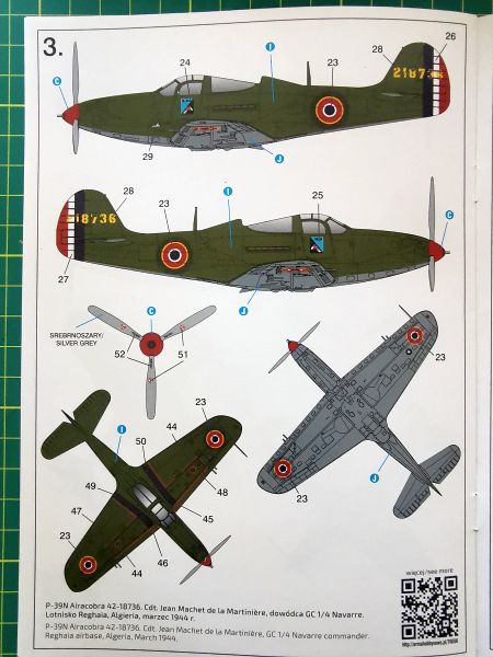 • P-39N Airacobra 42-18736. Cdt. Jean Machet de la Martinière, dowódca GC 1/4 Navarre. Lotnisko Reghaia, Algieria, marzec 1944 r.