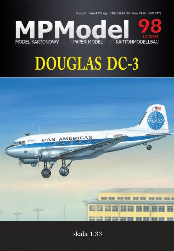 MPModel: Douglas DC-3 Skala: 1:33 Nr kat: No. 98 Typ modelu: model kartonowy |