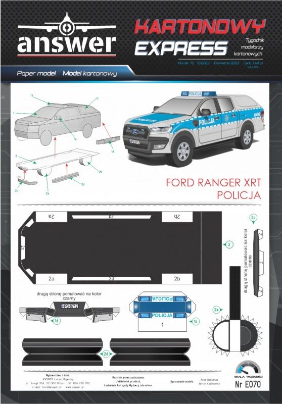 Kartonowy Exspress: Ford Ranger XRT Policja Skala: - Nr kat: No. E070 Typ modelu: model kartonowy |