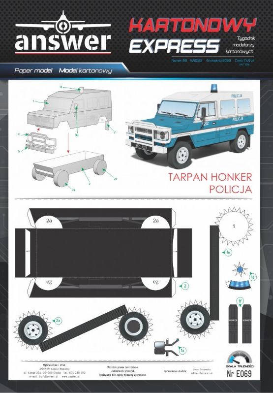 Kartonowy Exspress: Tarpan Honker Policja Skala: - Nr kat: No. E069 Typ modelu: model kartonowy |