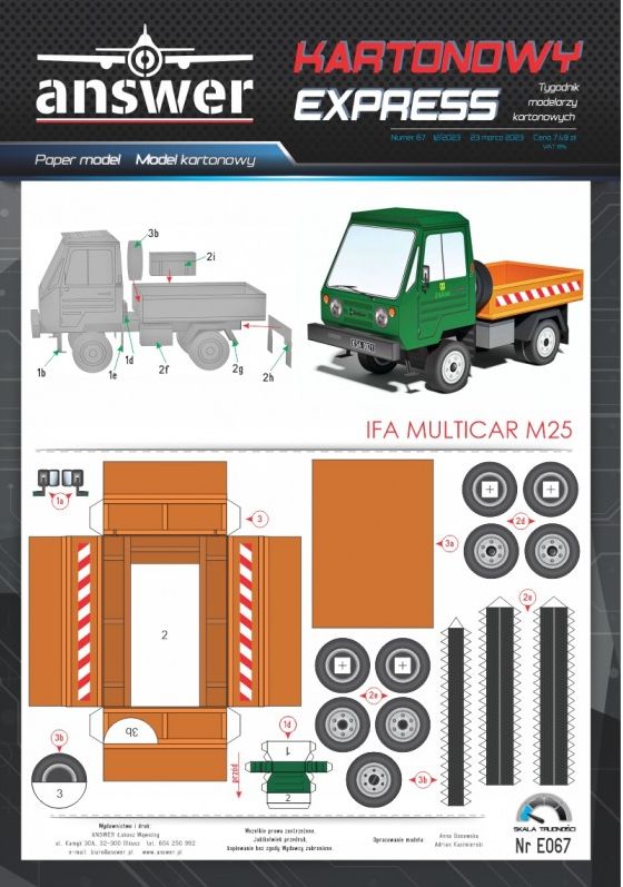 Kartonowy Exspress: IFA Multicar M25 Skala: - Nr kat: No. E067 Typ modelu: model kartonowy |