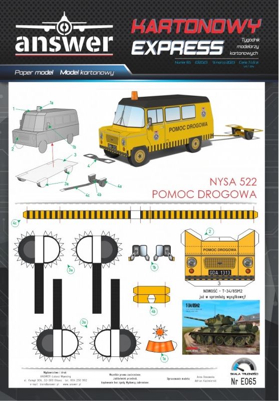 Kartonowy Exspress: Nysa 522 Pomoc Drogowa Skala: - Nr kat: No. E065 Typ modelu: model kartonowy |