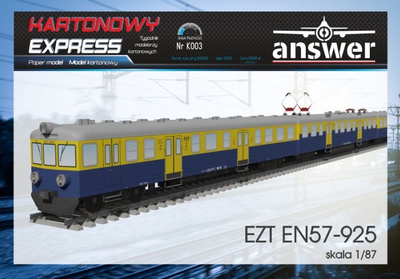 Kartonowy Express: ETZ EN57-925 Skala: 1/87 Nr kat: K.003 Typ modelu: model kartonowy |