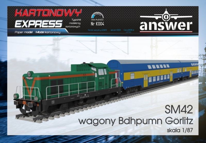 Kartonowy Express: SM42 wagony Bdhpumn Gorlitz Skala: 1/87 Nr kat: K.004 Typ modelu: model kartonowy |