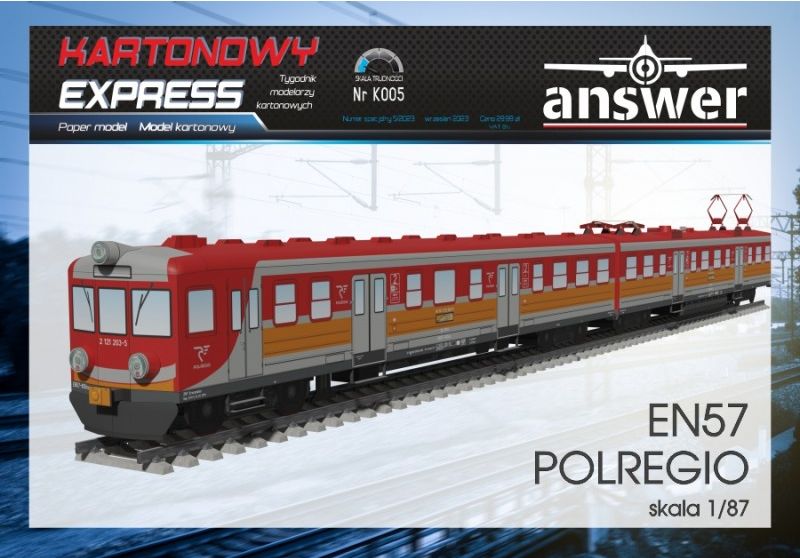 Kartonowy Express: EN57 POLREGIO Skala: 1/87 Nr kat: K.005 Typ modelu: model kartonowy |