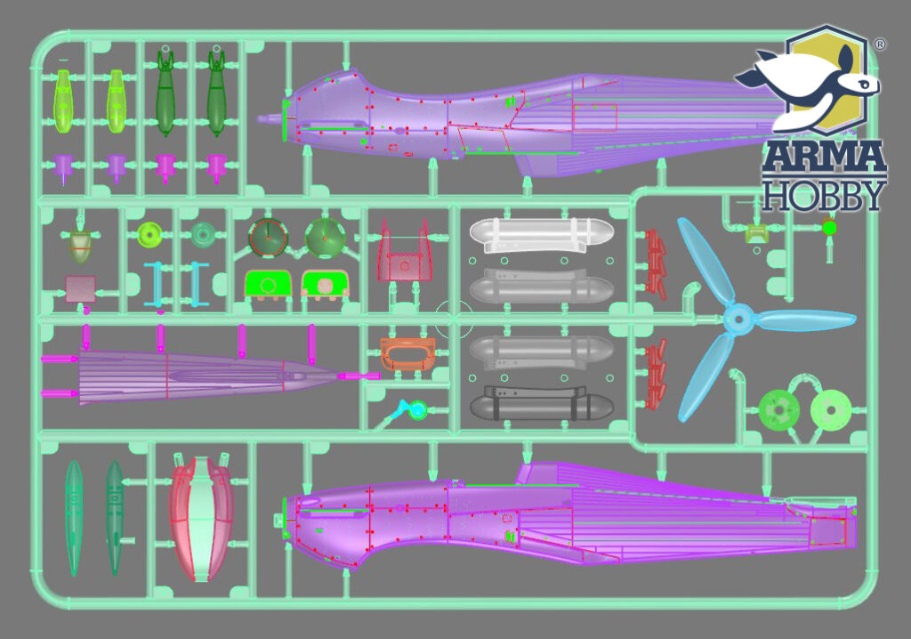 ARMA HOBBY: P-39N Airacobra Skala: 1:72 Nr kat: 70056 Opcje malowania: 3 Typ modelu: model wtryskowy, maski |