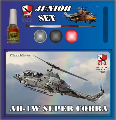 Big Model: AH-1W Super Cobra Junior SET Skala: 1:72 Nr kat: BGMJS72038 Opcje malowania: 1 Typ modelu: model wtryskowy (ex ZTS Plastyk), farby, klej, narzędzia |