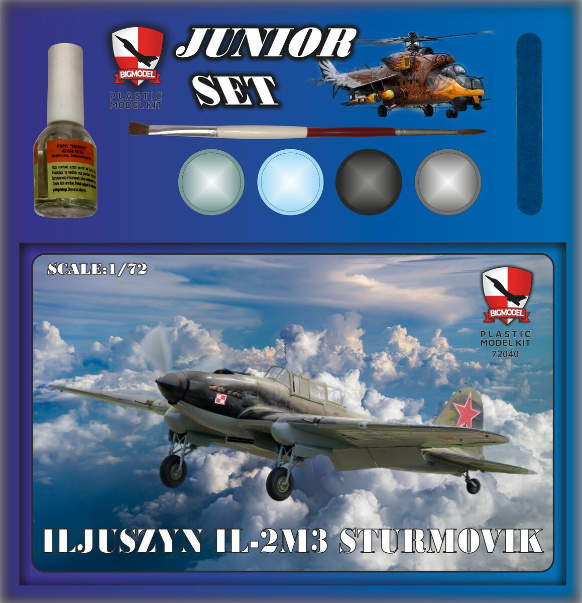 Big Model: Iljuszyn IL-2M3 Sturmowik junior SET Skala: 1:72 Nr kat: BGMJS72040 Opcje malowania: 1 Typ modelu: model wtryskowy (ex ZTS Plastik), farby, klej, narzędzia |