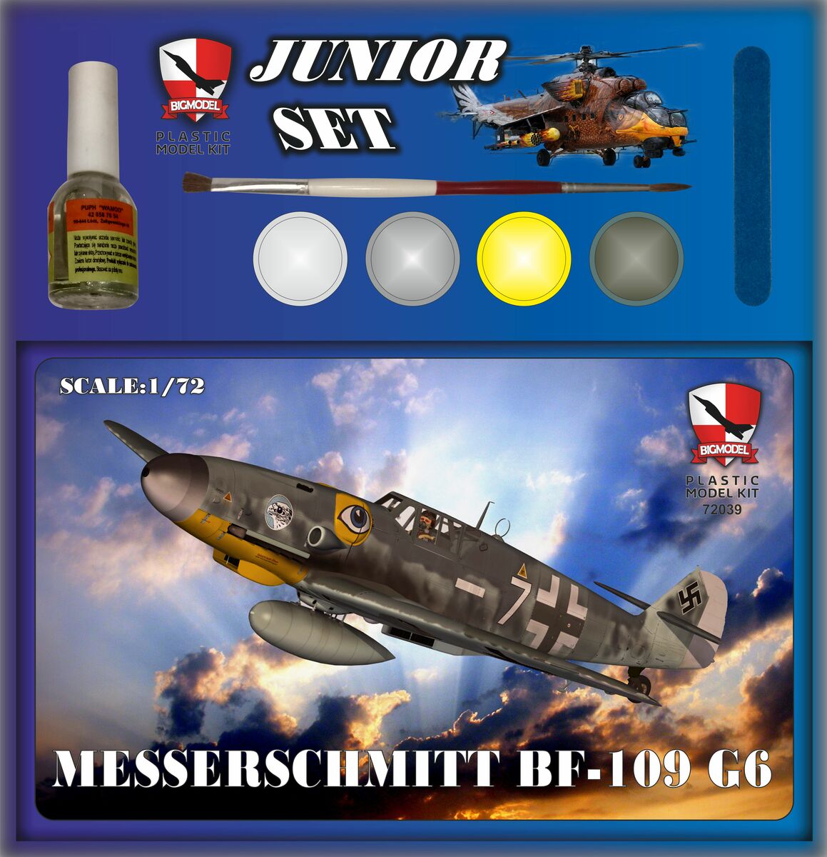 Big Model: Messerschmitt Bf-109 G-6 Junior SET Skala: 1:72 Nr kat: BGMJS72039 Opcje malowania: 1 Typ modelu: model wtryskowy (ex ?), farby, klej, narzędzia |