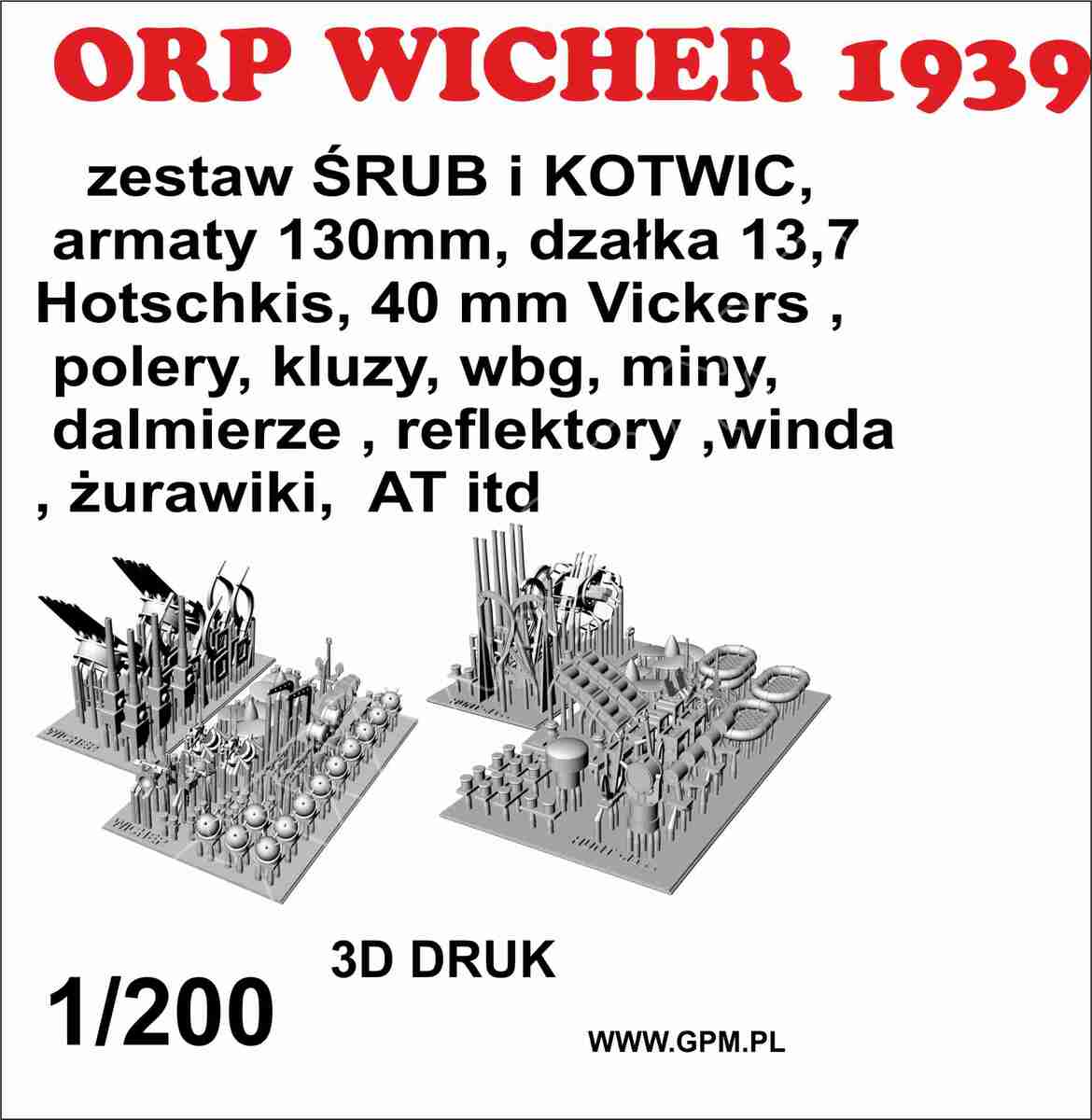 GPM: ORP Wicher 1939 Detail Set Skala: 1:200 Nr kat: 3D-200-24D Typ modelu: druk 3D |