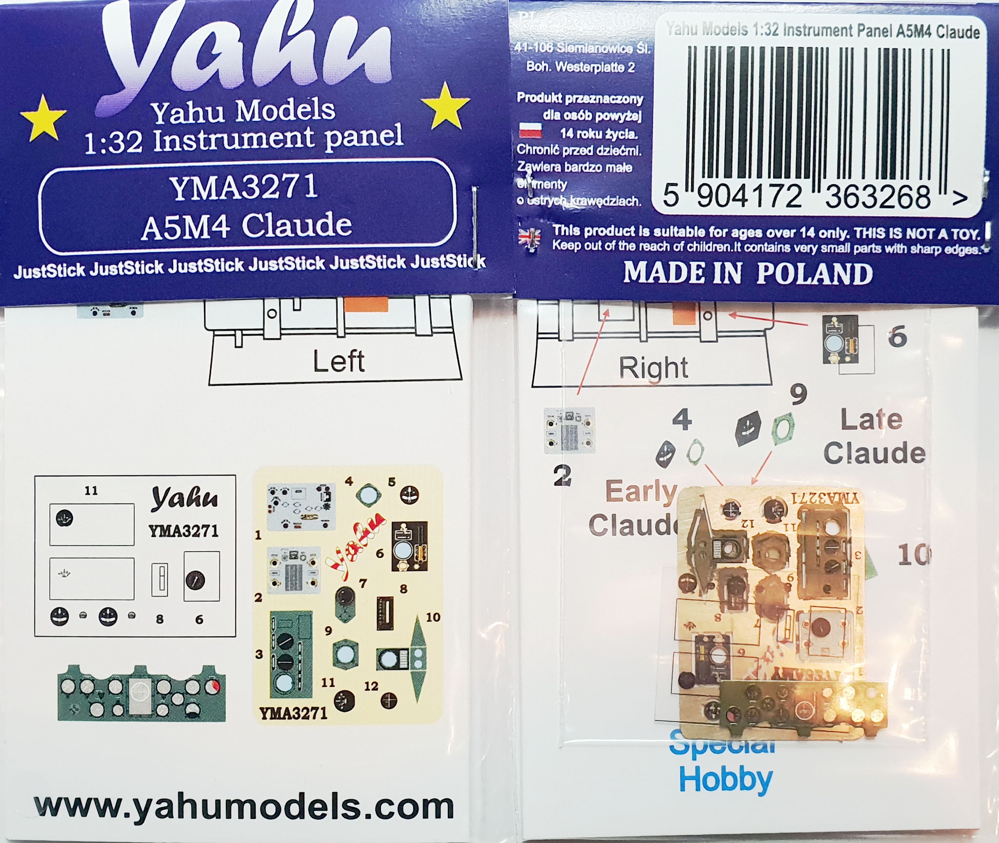 YAHUMODELS: A5M4 Claude Skala: 1:32 Nr kat: YMA3271 Typ: elementy fototrawione Dedykowany do: Special Hobby |