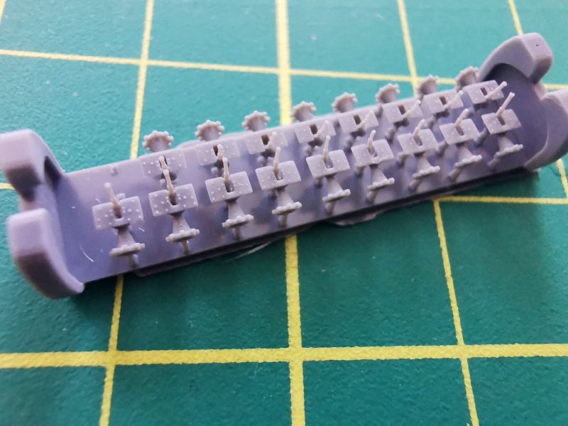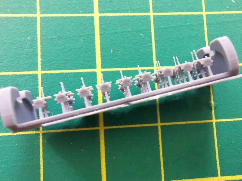 Nowa propozycja to Oerlikony w pozycjach bojowych w całości wykonane metodą wydruku 3D. Wszystko można o nich powiedzieć, poza tym że są uproszczone. Detale na podstawach i tarczach przeciwodłamkowych robią naprawdę duże wrażenie, a działka wystarczy wyciąć z wydruku, pomalować i umieścić na swoich miejscach w budowanym modelu. Odpada wyginanie, dopasowywanie, sklejanie i… wyzywanie. Sprawa bardzo istotna szczególnie przy budowie modeli dużych okrętów takich jak pancerniki czy lotniskowce, gdzie liczba stanowisk takich działek oscylowała pomiędzy osiemdziesiąt do stu.