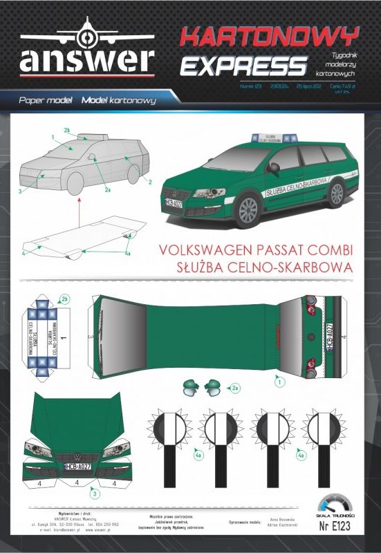 Kartonowy Exspress: VW Passat Combi Służba celno - Skarbowa Skala: - Nr kat: No. E123 Typ modelu: model kartonowy |