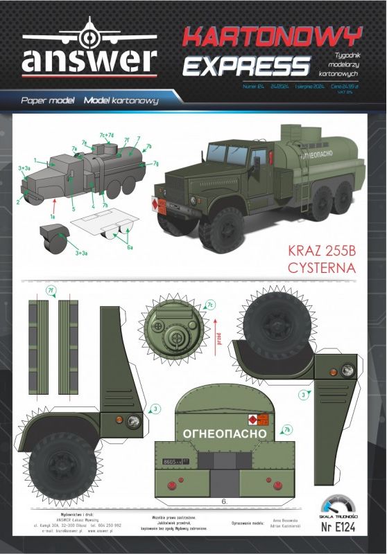 Kartonowy Exspress: Kraz 255B Cysterna Skala: - Nr kat: No. E124 Typ modelu: model kartonowy |