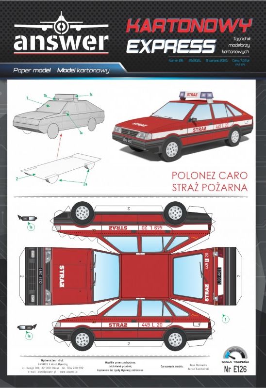 Kartonowy Exspress: Polonez Caro Straż Pożarna Skala: - Nr kat: No. E126 Typ modelu: model kartonowy |