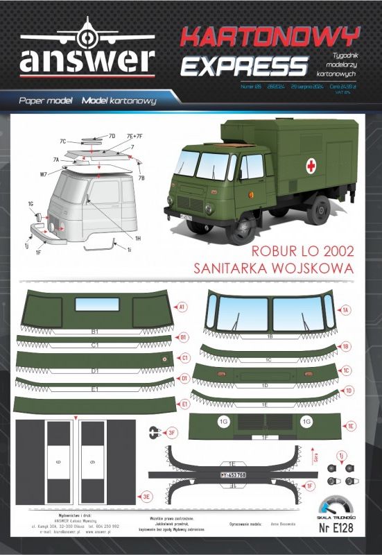 Kartonowy Exspress: Robur LO 2002 Sanitarka Wojskowa Skala: - Nr kat: No. E128 Typ modelu: model kartonowy |
