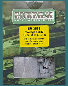 EurekaXXL: Stowage Set for Stug III Ausf. G #2 Skala: 1/35 Nr kat: ER3576 Typ: elementy żywiczne, linka Dedykowany do: różne |