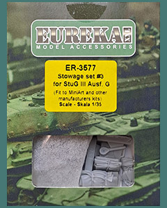 EurekaXXL: Stowage Set for Stug III Ausf. G #3 Skala: 1/35 Nr kat: ER3577 Typ: elementy żywiczne, linka Dedykowany do: różne |
